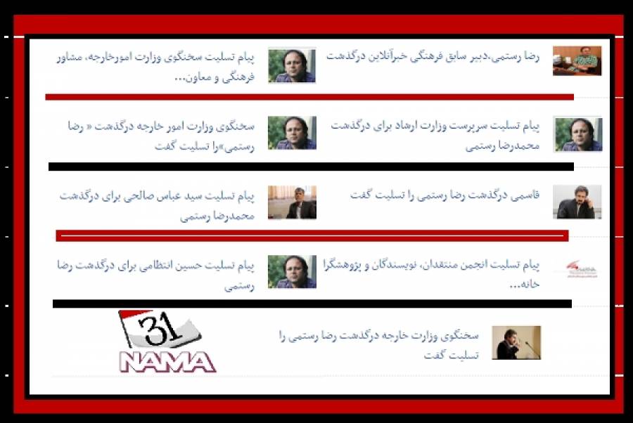 رضا رستمی دبیر سابق فرهنگی خبر آنلاین و خبرنگار سینمایی کشور شب گذشته ۲۸ مهر ۹۵ از دنیا رفت.وی دو دهه خبرنگار حوزه سینما بود و پس از ابتلا به تومور مغزی در بیمارستان شهدای تجریش تهران درگذشت.