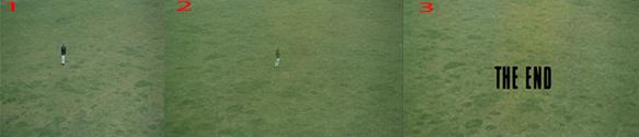 فاصله ی نمای اول از زمین تنیس که دو نفر مشغول بازی هستند تا نمای دوم که دیگر خبری از آنها نیست برابر است با فاصله ای چند ثانیه ای و کوتاه، اگر بخواهیم به این که، آنها حین این فاصله از زمین خارج شدند فکر کنیم عملا غیر منطقی است. در ضمن کارگردان روی زمین تنیس خالی شده تاکید می کند. در این صحنه آنتونیونی انگار نوعی شعبده بازی برای ما انجام می دهد. شعبده بازی آنتونیونی در باب آشکار و نهان بودن حقیقت است، یعنی مفهومی که خود فیلمساز (برای مثال صحنه ای که در بالا ذکر شد) و همین طور تاماس مدام با آن درگیر است. در مورد تاماس و ابهام در حقیقت می توان اشاره کرد به صحنه هایی که تاماس مجددا سراغ عکس ها می رود و آنها ناپدید شده است و یا وقتی که به سراغ جسد می رود، ناپدید شده است. این پدیده در جاهای دیگر فیلم باز هم قابل رویت هست. صحنه پایانی فیلم جایی که دلقک ها برای بار دوم در فیلم ظاهر می شوند را به خاطر بیاورید زمانی که به صورت خیالی مشغول تنیس بازی هستند (نه توپی وجود دارد و نه راکتی). هنگامی که توپ خیالی به بیرون می رود، و از تاماس که متحیر ناظر این بازی هست می خواهند توپ را برایشان پرتاب کند، تاماس این کار را انجام می دهد و توپ خیالی را برایشان پرتاب می کند، دوربین در اینجا روی صورت تاماس می ماند و چندی بعد صدای توپ و راکت به گوش می رسد این جا آنتونیونی تمام معادلاتی که در ذهن مخاطب قرار دارد را بهم می زند و تمام باور هایی که از مفهوم حقیقت وجود دارد را از بین می برد. به راستی حقیقت چیست؟ چگونه قابل تشخیص و فهمیدن است؟ و یا حتی نمای آخر فیلم وقتی دوربین از بالا تاماس را تنها در دل زمین چمن نشان می دهد، در این تصویر قبل از بالا آمدن پایان در ثانیه ای تاماس محو می شود و بعد پایان بالا می آید، انگار همه اینها خیال بوده و انگار تاماس و این داستان ها از ابتدا واهی بوده اند (نگاه کنید به تصاویر زیر).