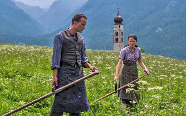فیلم با قاب های زیبا آغاز می شود. قابهایی که مصالحش مناظر زیباست و موسیقی بسیار ظریف. قاب هایی که در عین زیبایی، حس غمی را به مخاطب القا می کنند. مانند یک غروب زیبا اما دلگیر. دوربینی که مستندوار، زندگی «فرانتس» و همسرش «فرانزیسکا» یا همان «فانی» (با بازی والری پاکنر _ Valerie Pachner‎) را نشان می دهد. زندگی که پر از عشق و زیبایی ست‌. زندگی که با وجود سادگی امکانات و سختی های کار، پر از شور زیستن است. عشق بین این دو، شور زیستن را می سازد و وجود دختران کوچکشان، پروارش می کند. در واقع فیلم همان فرمی را دارد که از «ترنس مالیک» در مقام کارگردان این اثر انتظار داریم.