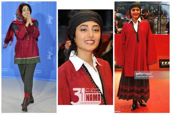 درباره الی، فستیوال برلین و گلشیفته فراهانی البته پیش از "رفتن"؛ با استایلی به آیین و شادمانه و ترکیب رنگی‌ای گرم و گیرا. این پوشش را شاید نتوان در کتگوری استایل‌های رسمی و فرمال جای داد ولی به قطع، از جالب توجه‌ترین پوشش‌ها در آن زمان بود که نگاه‌های زیادی را به خود جلب کرد. پوشش او در فوتوکال نیز با نشانه‌هایی که ریشه در پوشش ایرانی داشت و همنشینی ملیح و خواستنی رنگ‌ها می‌بینیم با لبخند و شوری که بر چهره‌اش خوش نشسته تا جلوه‌اش را صد چندان کند.